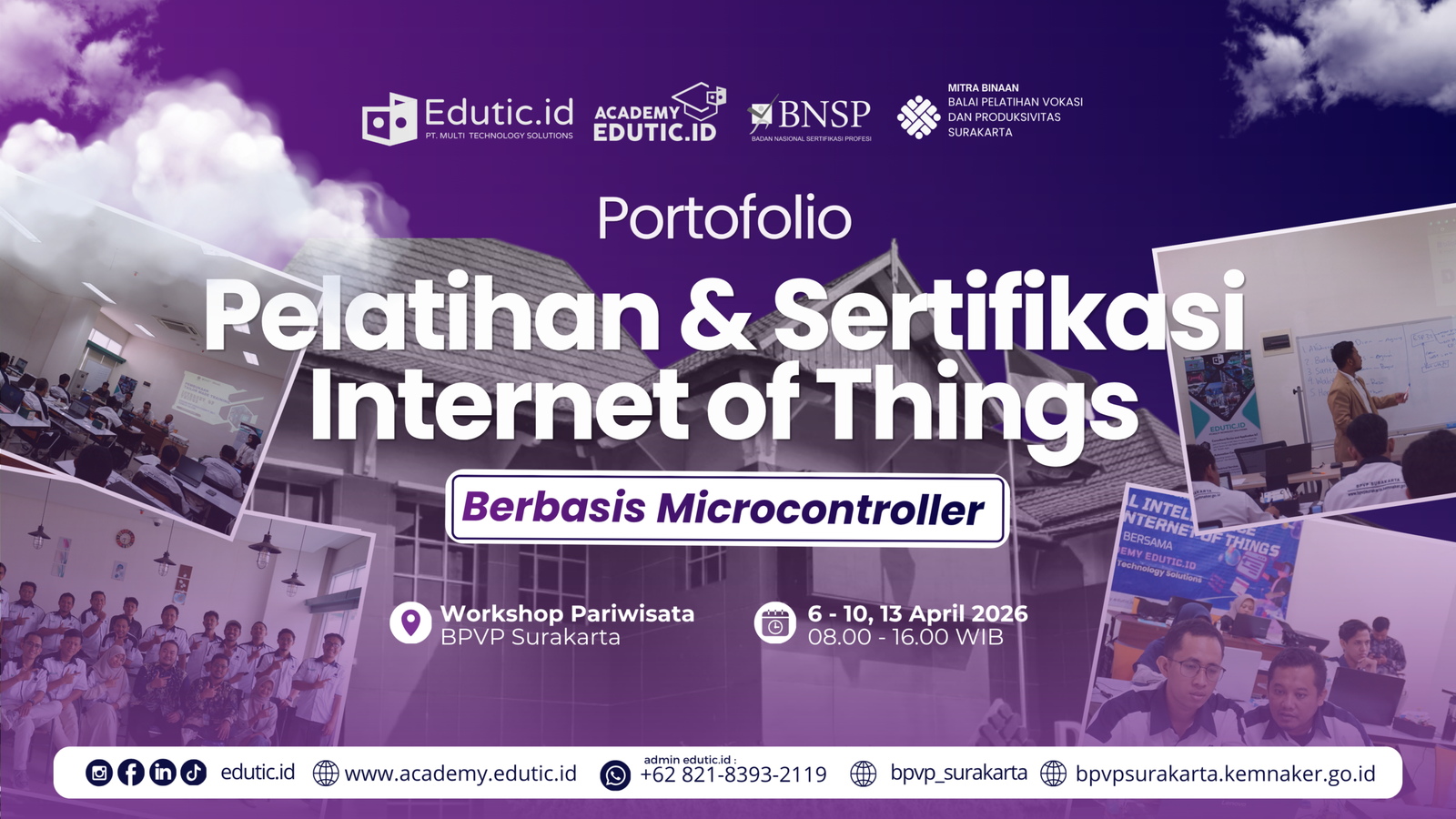 academy.edutic.id menghadirkan platform untuk meningkatkan kompetensi talenta digital agar siap kerja di industri 4.0 melalui program pelatihan Industrial IoT, pembelajaran berbasis proyek (project-based), dan sertifikasi resmi BNSP dengan berbagai skema.