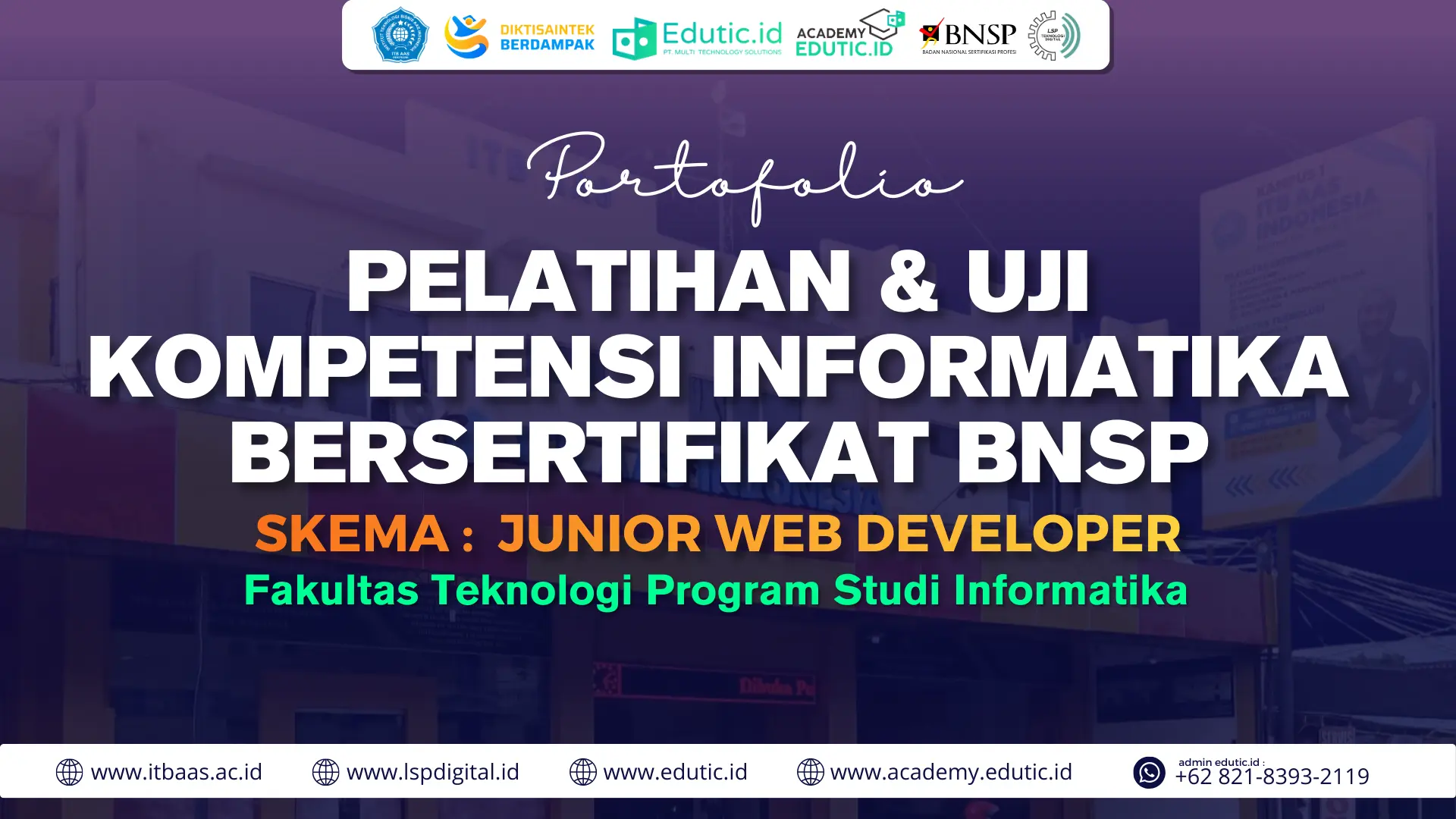 Tepat pada Selasa, 10 Februari 2026, rangkaian Pelatihan dan Uji Kompetensi Junior Web Developer di ITB AAS Indonesia resmi berakhir dengan sukses. Kolaborasi antara Program Studi Informatika dan Edutic.id ini bukan sekadar pelatihan teknis biasa, melainkan sebuah misi untuk mencetak talenta digital yang memiliki standar kompetensi nasional melalui sertifikasi BNSP Junior Web Developer.