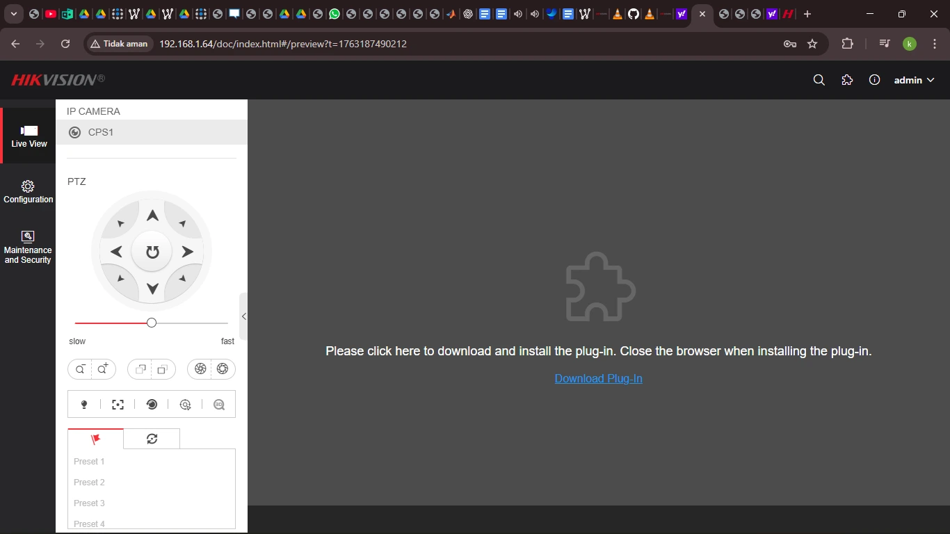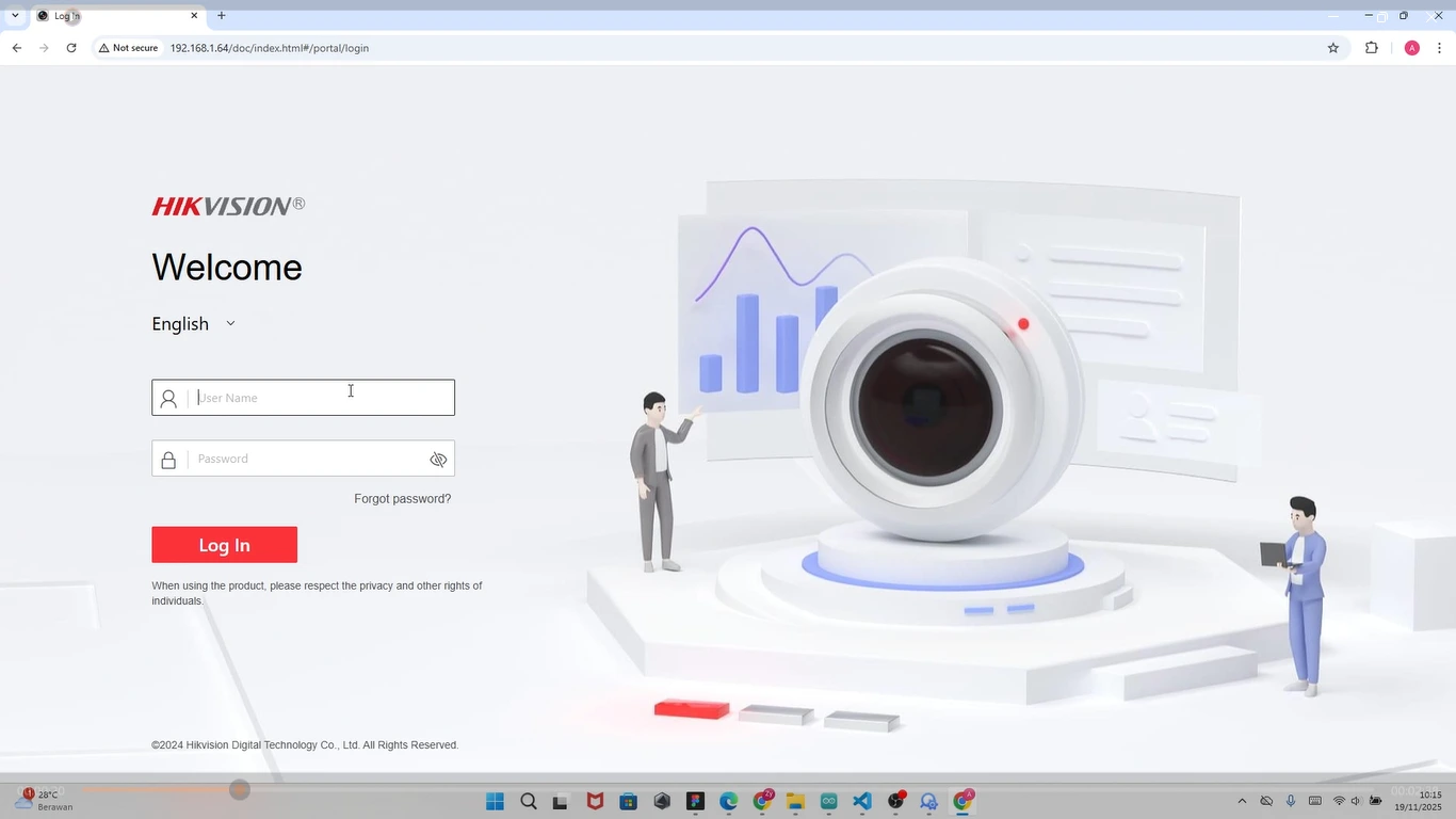 - Buka Browser lalu masukkan IP address yang telah di setting di kolom pencarian maka akan muncul dashboard Hikvision